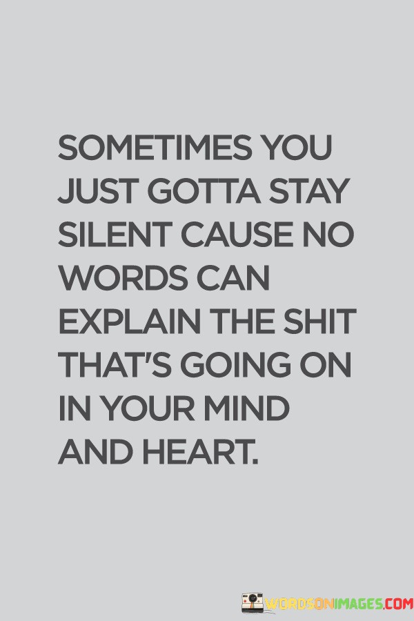 The quote reflects the limitations of language in expressing profound emotions. "Stay silent" signifies the inability to articulate. "No words can explain" underscores the complexity of thoughts and feelings. The quote conveys the depth of internal turmoil that defies explanation.