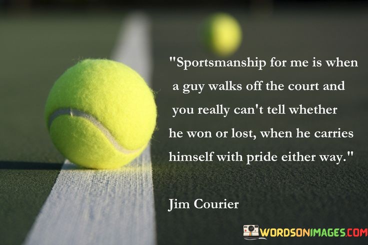 The quote underscores that sportsmanship is not defined solely by winning or losing. Instead, it focuses on how an individual carries themselves and their attitude towards the game, regardless of the final score. A person who upholds sportsmanship values maintains their dignity, respect for opponents, and pride in their efforts whether they come out on top or face defeat.