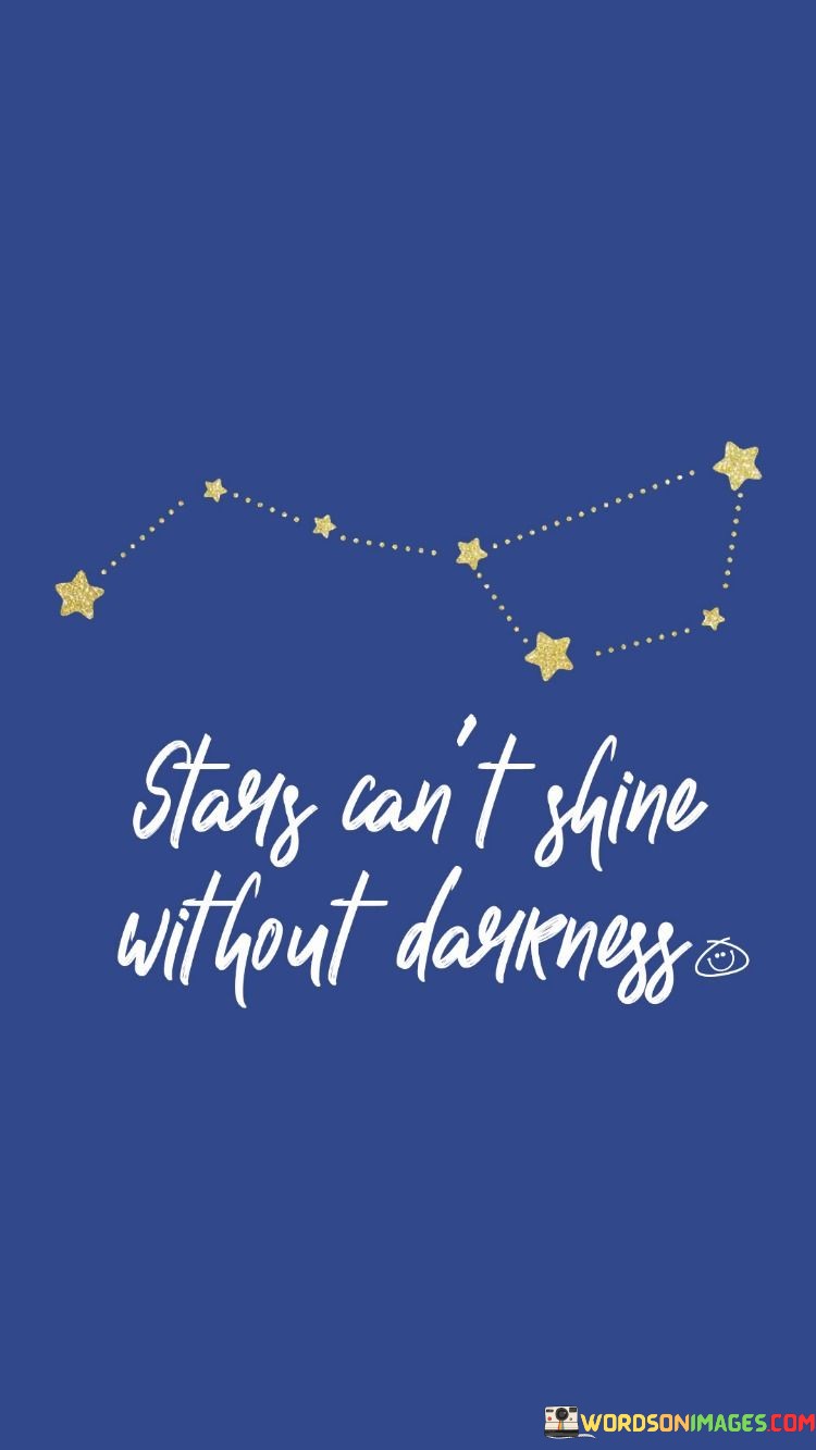 This poetic quote illustrates the contrast between light and darkness. "Stars can't shine" conveys that the brilliance and beauty of stars are only visible against the backdrop of darkness.