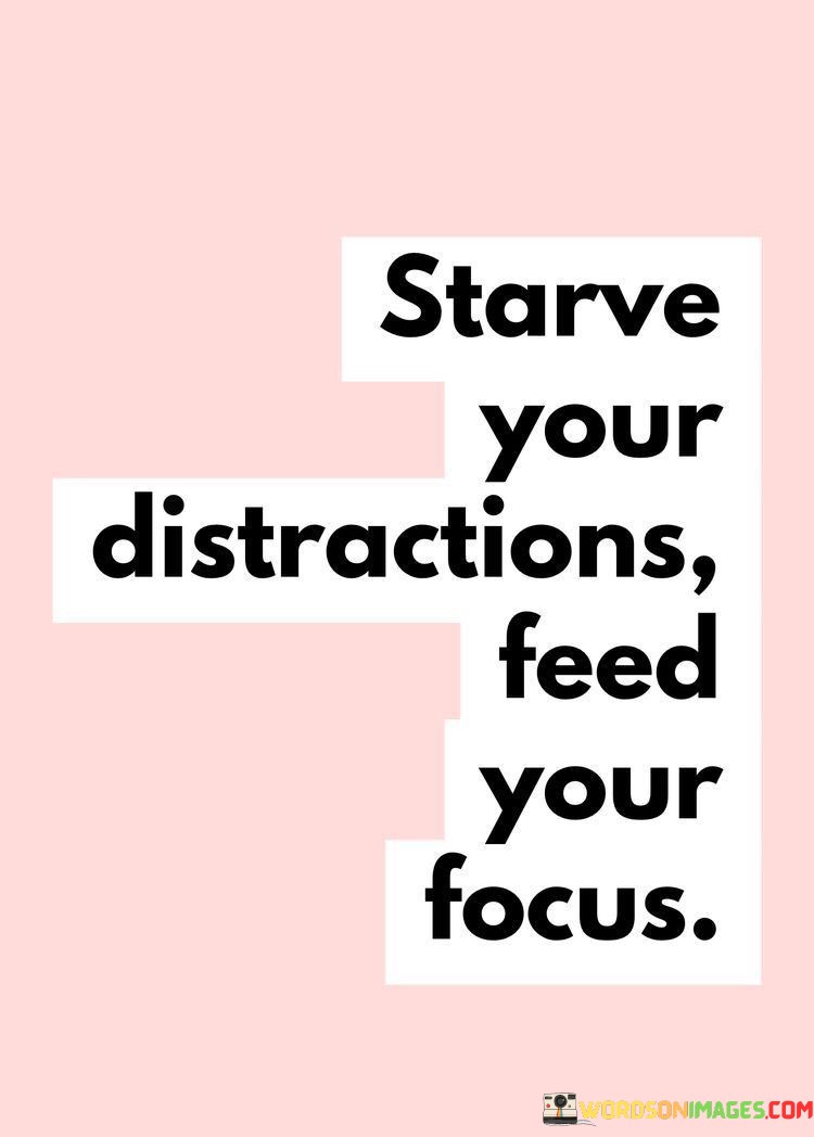 This concise quote highlights the importance of prioritizing focus over distractions. "Starve your distractions" urges us to minimize or eliminate anything that diverts our attention from our goals.