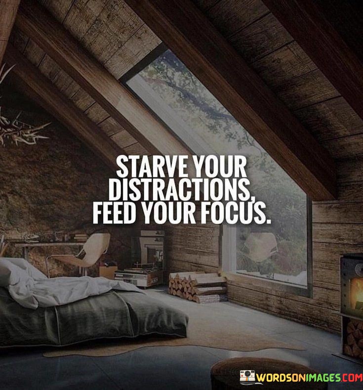 "Starve Your Distractions" urges minimizing or eliminating activities that divert attention from important tasks. It advises against wasting energy on elements that hinder progress.