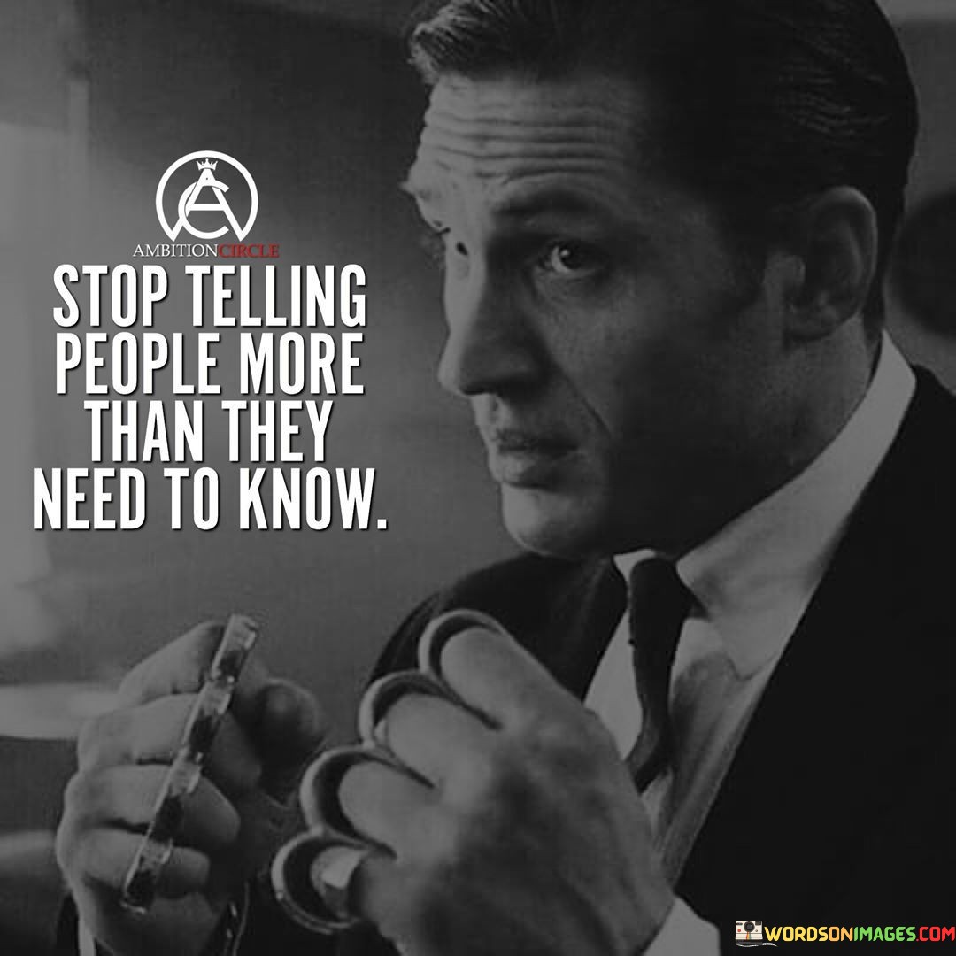 The quote speaks to maintaining healthy relationships. Revealing precisely what's necessary fosters an atmosphere of trust and respect. Sharing too much can burden others or strain connections with excessive information. By practicing the art of measured disclosure, we create an environment where conversations are purposeful, ensuring that communication remains relevant and impactful.