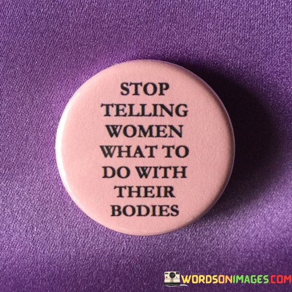 This strong and straightforward statement advocates for women's autonomy and bodily autonomy. It calls for an end to the practice of dictating or imposing decisions on women concerning their own bodies.