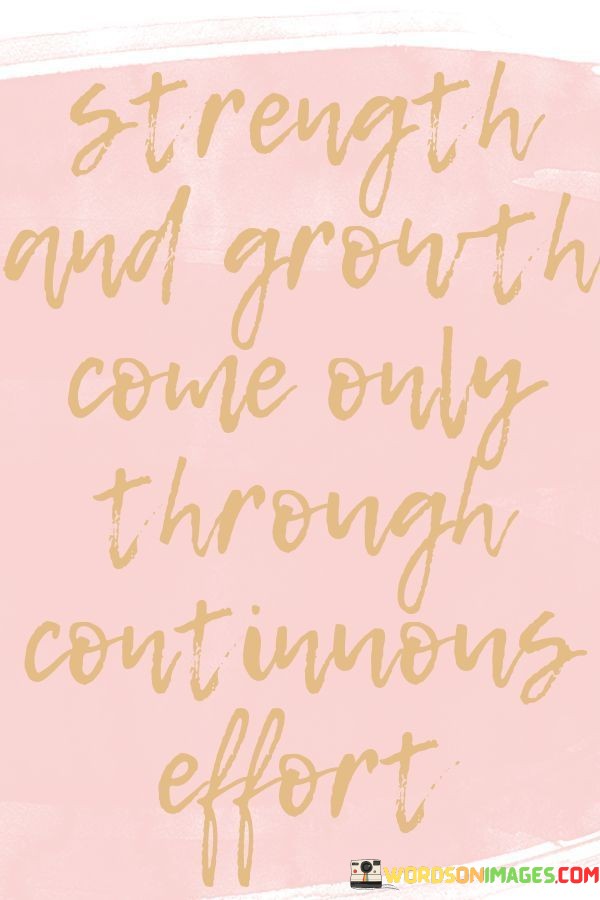 "Strength and growth" encompass both physical and mental advancement. The phrase suggests that becoming stronger and more capable, as well as achieving personal growth, require ongoing dedication.