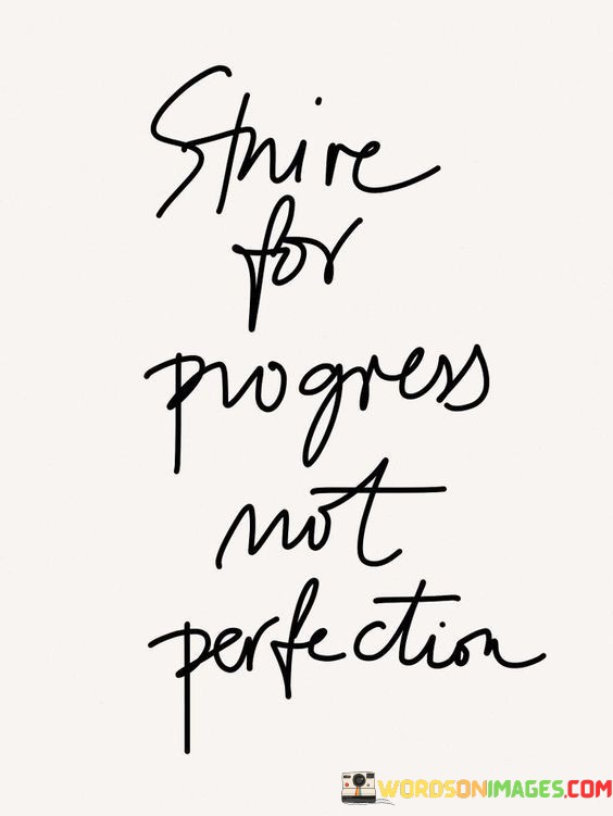The statement promotes the idea of valuing personal growth over unrealistic ideals. It implies that aiming for progress acknowledges the journey of improvement and learning. By recognizing the value of incremental steps, individuals can cultivate a mindset that fosters self-acceptance and resilience.