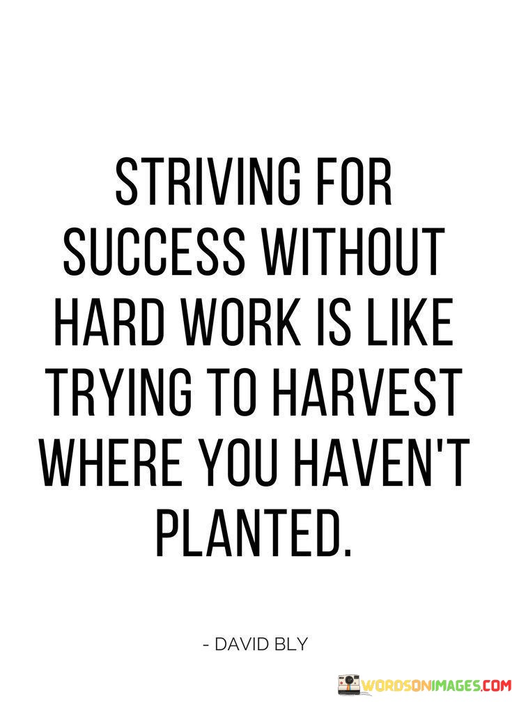 The analogy "Striving For Success Without Hard Work Is Like Trying To Harvest Where You Haven't Planted" vividly illustrates the principle that effort and preparation are necessary prerequisites for achieving desired outcomes. In this context, the first paragraph highlights the futility of expecting results without putting in the necessary work.