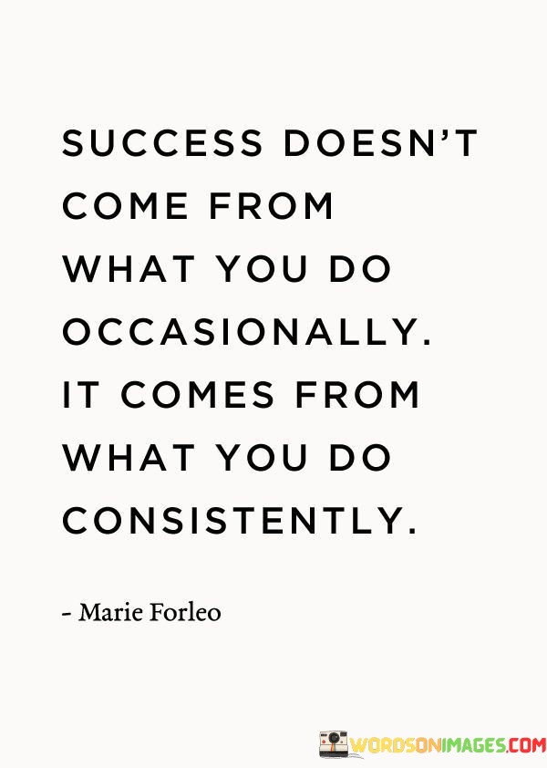 In summary, this quote reminds us that success is a result of the habits and actions we consistently practice. It encourages individuals to focus on sustained, deliberate efforts rather than relying on occasional actions or short-lived bursts of activity.