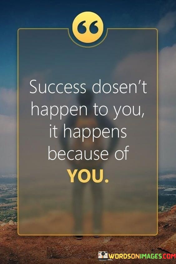 In essence, the quote emphasizes empowerment. It conveys that success isn't something that happens independently of your actions; rather, it's a reflection of your determination, dedication, and the choices you make. By taking initiative and driving your own journey, you can actively shape the path to success.