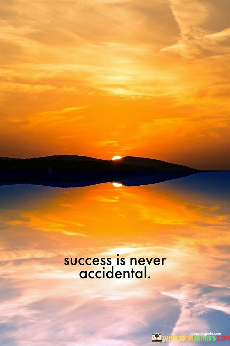 In essence, "Success Is Never Accidental" serves as a reminder that those who attain their goals do so with intentionality and a commitment to their objectives. It encourages individuals to take control of their path to success and to be proactive in their efforts rather than relying on luck alone.