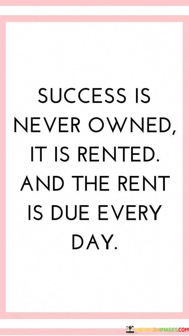 It underscores the notion of continuous work. The phrase suggests that success is not a one-time possession, but rather a constant effort that needs to be sustained. It reflects the idea that consistent commitment is necessary.