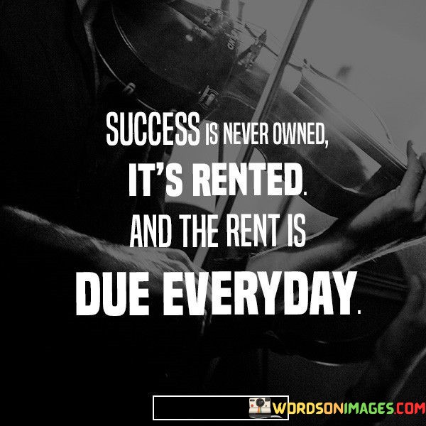 The quote implies that achieving success isn't the end of the journey; it's an ongoing process. It conveys that the "rent" for success, which represents sustained effort and dedication, is due every day.