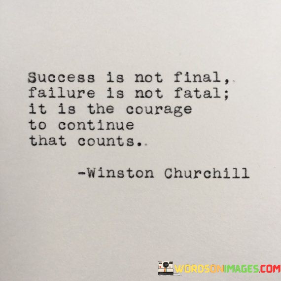 The quote "Success is not final, failure is not fatal; it is the courage to continue that counts" encapsulates the idea that both success and failure are fleeting moments, and the real measure of strength lies in the determination to keep moving forward.
