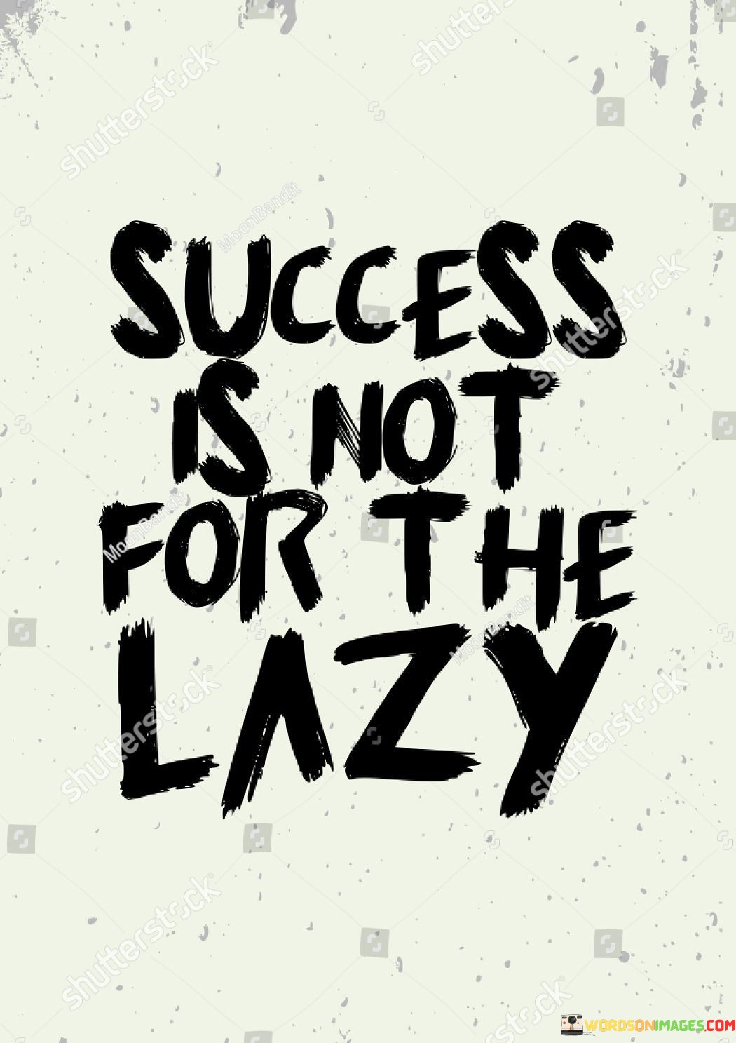 The statement asserts that success is not attainable through laziness or idleness. It suggests that achieving one's goals requires effort, diligence, and proactive engagement. By emphasizing the importance of hard work and initiative, the statement underscores that meaningful accomplishments demand active participation.