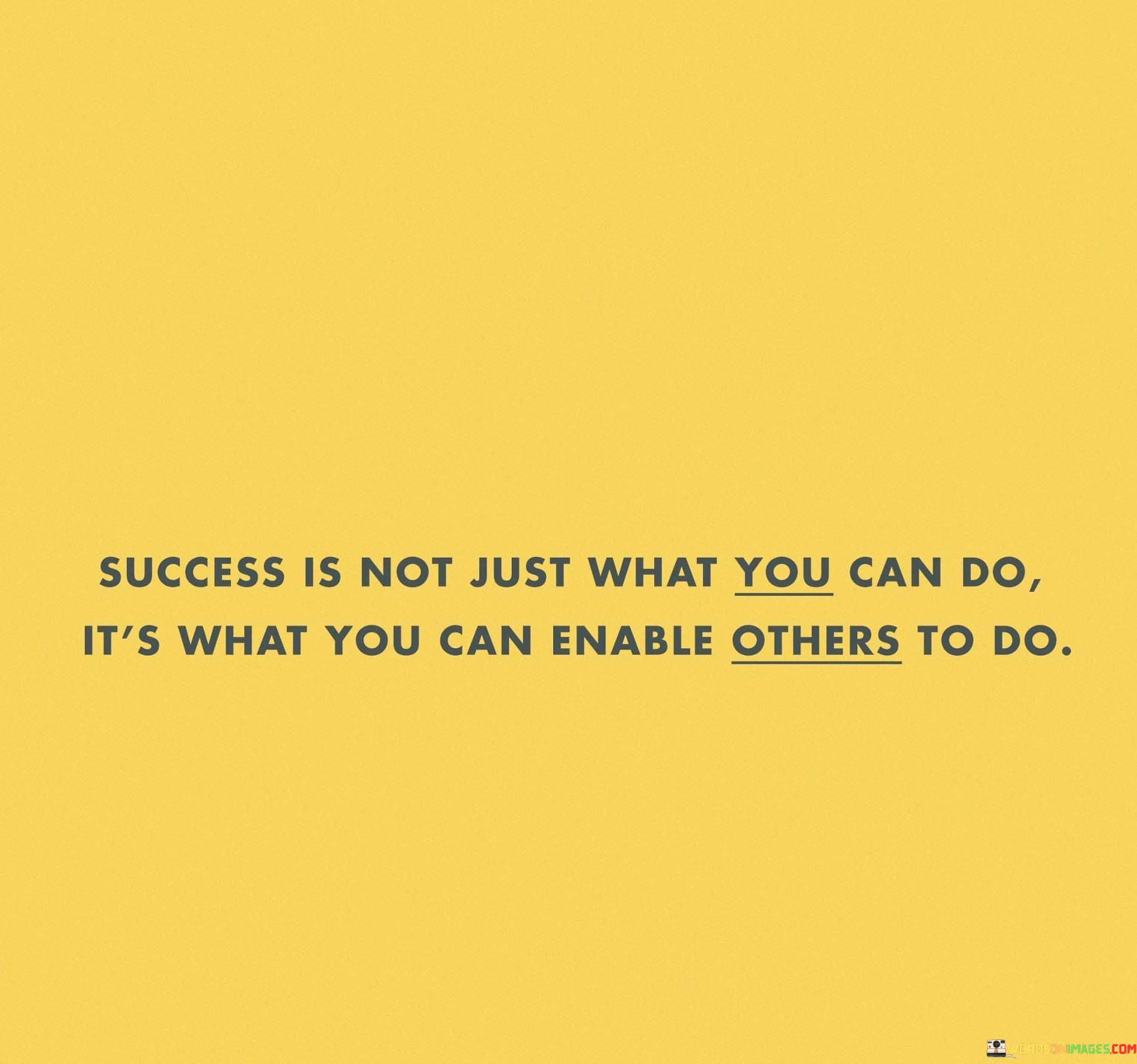 The phrase "Success is not just what you can do, it's what you can enable others to do" succinctly conveys the idea that true success involves empowering and supporting others.