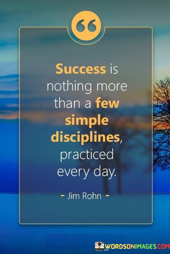 This quote simplifies success as the result of consistent daily practices. It suggests that achieving success doesn't require complex strategies, but rather a commitment to straightforward disciplines.