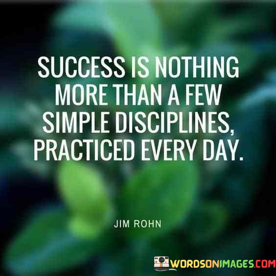 The statement simplifies the concept of success by highlighting the role of consistent daily disciplines. It suggests that success is attainable through the practice of straightforward habits and routines. By emphasizing the power of consistent effort, the statement underscores that meaningful accomplishments are the result of regular, intentional actions.