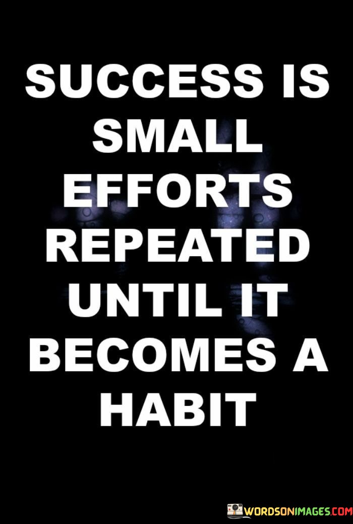 This quote succinctly captures the essence of success as the result of consistent, incremental efforts that evolve into habitual actions: