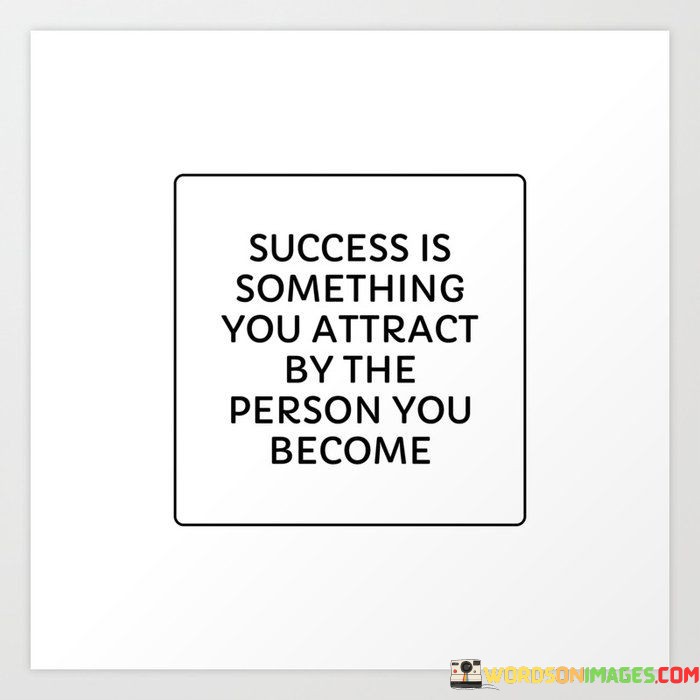 The statement "Success Is Something You Attract by the Person You Become" highlights the connection between personal growth and the achievement of success. It suggests that as individuals develop their character and skills, they naturally draw success toward themselves.