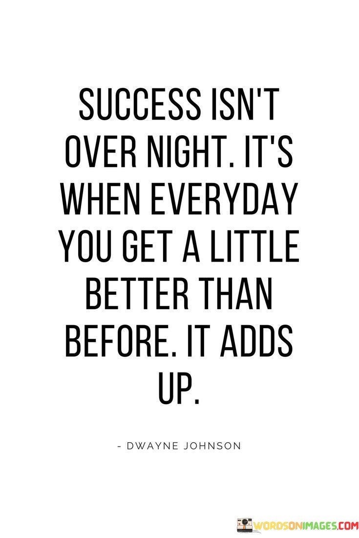 The quote continues with "It's when every day you get a little better than before; it adds up," highlighting the importance of daily progress and self-improvement. It implies that success is not about making giant leaps but about making incremental improvements consistently.