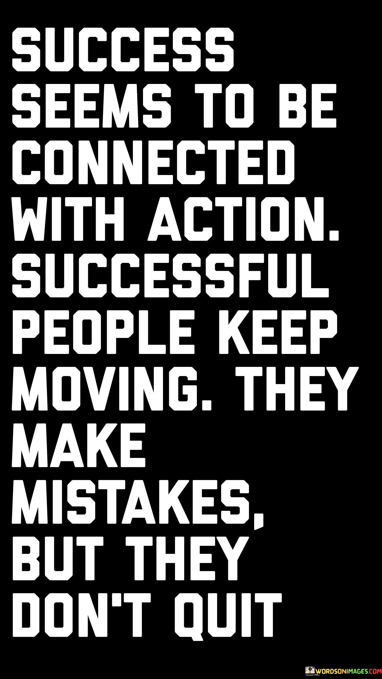 The phrase "Successful people keep moving, they make mistakes, but they don't quit" underscores the resilience and determination of those who achieve success. It acknowledges that making mistakes is a natural part of any journey, but what sets successful individuals apart is their refusal to give up.