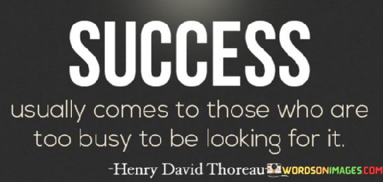 It emphasizes focus and dedication. The phrase suggests that consistently working on meaningful endeavors tends to attract success naturally. It reflects the idea that busy individuals are driven by their passion and purpose.