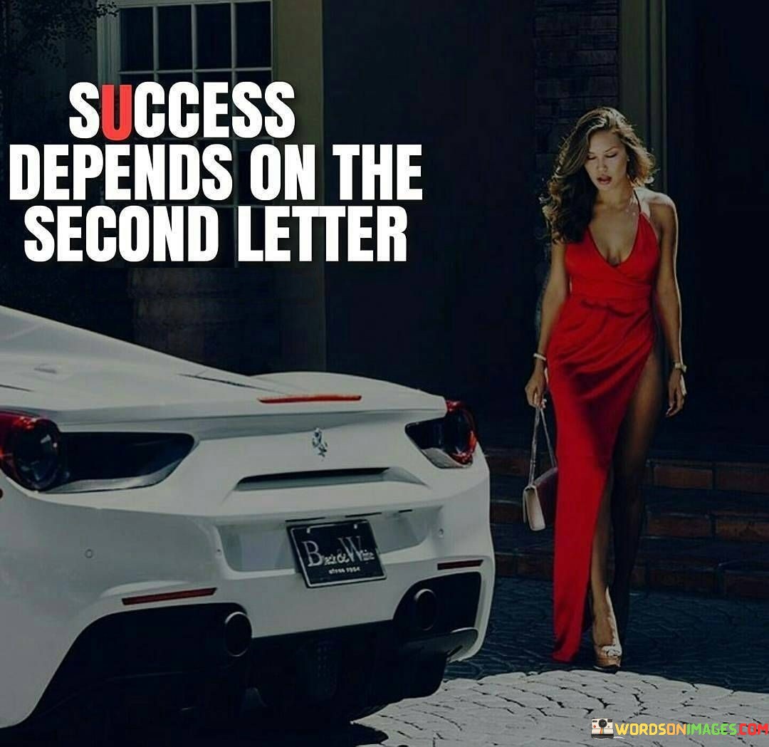 The phrase "Success depends on the second letter" succinctly conveys the idea that the path to success often hinges on the choices and actions taken after the initial steps.