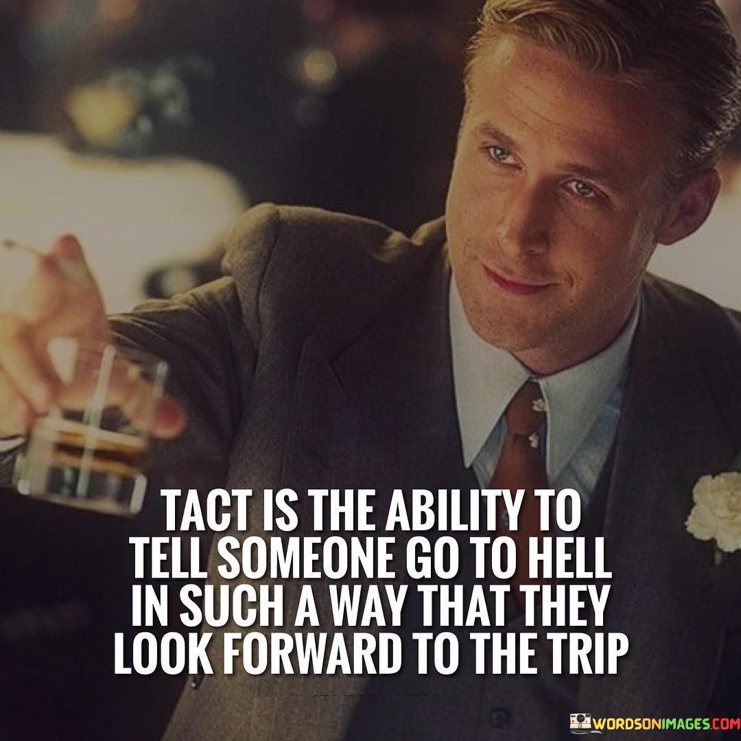 The quote suggests that tact involves not only delivering a message but also managing the recipient's emotions and perception. It underscores the importance of choosing words and tone carefully to soften the impact of the message and maintain a positive relationship.