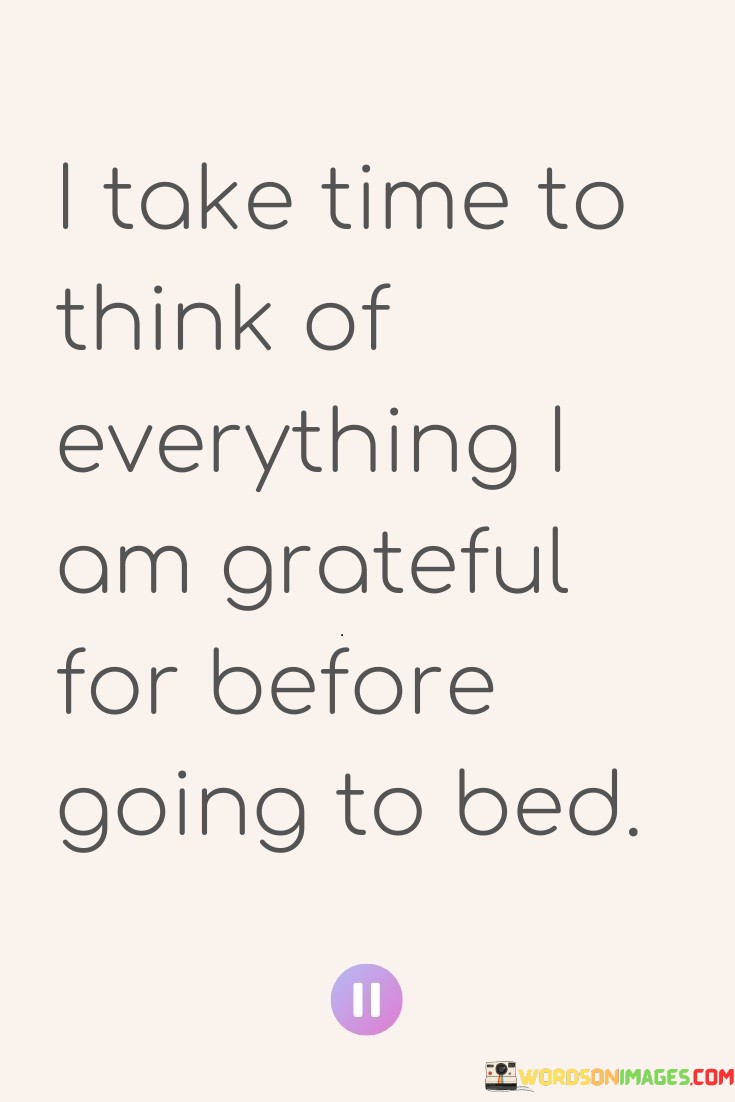 In the first paragraph, the core message of the quote is explored. It encourages individuals to set aside a few moments each night to consciously contemplate the things they are thankful for. This practice serves to shift focus from daily challenges to positive aspects of life.