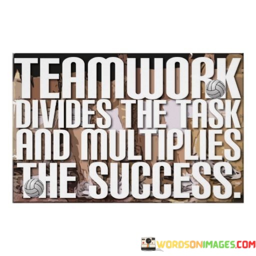 The first paragraph delves into the essence of the quote, portraying teamwork as a division of responsibilities. It suggests that when a group collaborates, tasks are distributed among team members based on their strengths. This division enables efficient handling of various aspects of a project or goal.