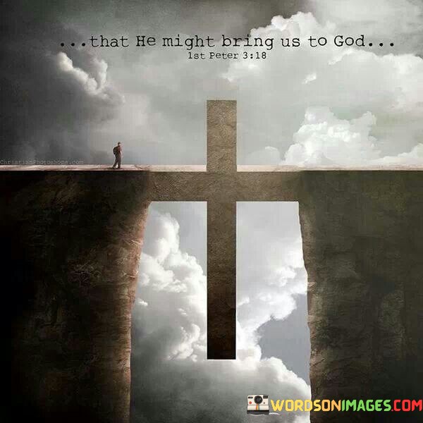 In essence, "That He Might Bring Us To God" encapsulates the core message of Christian faith, highlighting the belief that Jesus Christ serves as the mediator who enables believers to approach God and find salvation and spiritual connection. It signifies the profound significance of Christ's redemptive work in the Christian worldview.