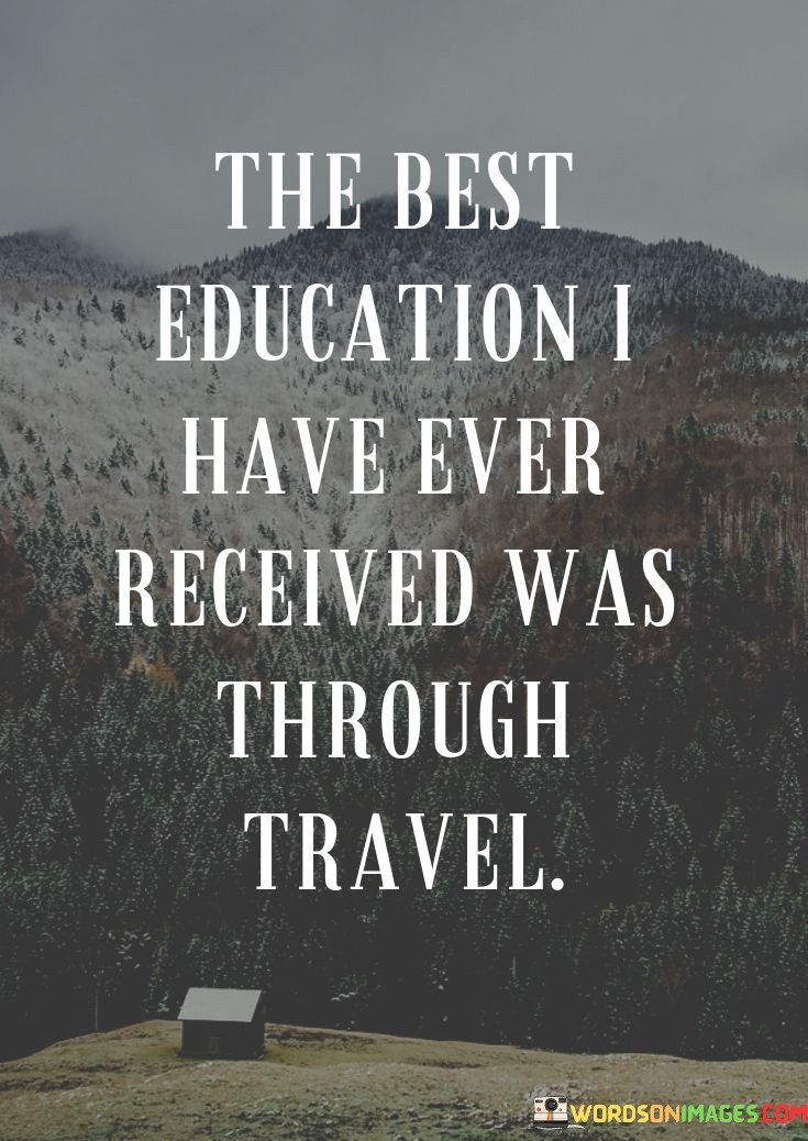 "The best education I have ever received was through travel" underscores the profound and transformative learning that occurs through exploring different places and cultures.