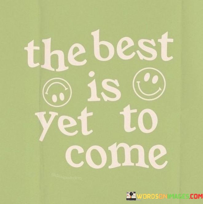 "The best is yet to come": It conveys the belief that the most positive and fulfilling experiences and moments are still ahead in life.