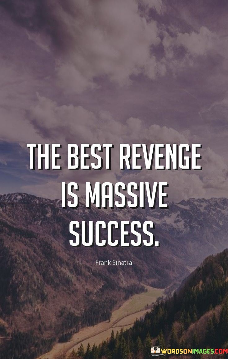 The quote suggests that achieving significant success is the most powerful form of revenge. It implies that instead of seeking revenge through negative actions, channeling energy into achieving remarkable accomplishments serves as a powerful response to adversity or criticism. By highlighting the transformation of negative experiences into motivation for achievement, the quote underscores the potential for growth and triumph in the face of challenges.