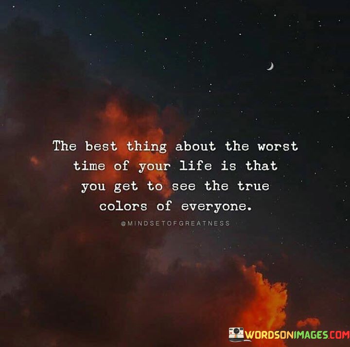 The final paragraph underscores the idea that challenging situations provide insight into the behavior and intentions of those around us. This quote reflects the notion that difficult times can act as a filter, exposing true motives, loyalties, and attitudes. It emphasizes the importance of self-discovery and evaluating relationships during times of hardship, ultimately contributing to a deeper understanding of people and circumstances.