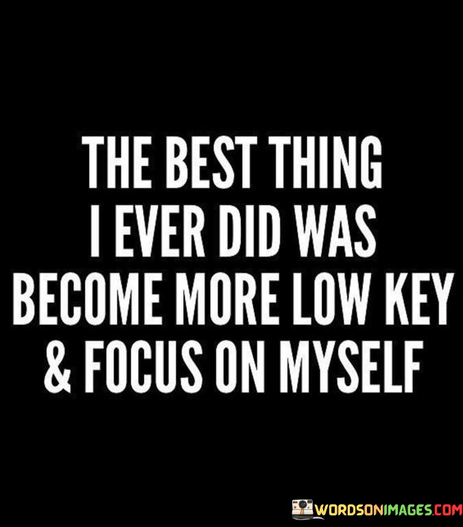 Ultimately, the quote speaks to the empowerment of self-focus. It encourages individuals to find fulfillment in personal progress rather than seeking validation from others. By cultivating a low-key approach and self-centered focus, individuals can achieve personal milestones and enjoy a sense of fulfillment.