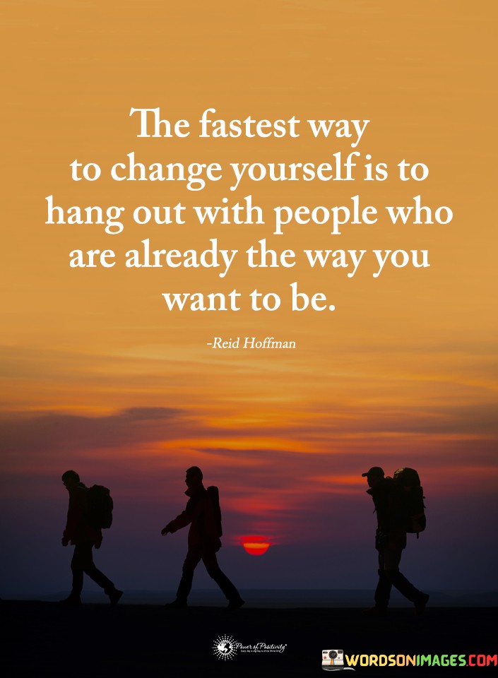 So, this quote is telling us that if we want to change or improve ourselves quickly, one way to do it is to spend time with people who have the qualities we admire. Their positivity and skills can help us become more like the person we want to be.