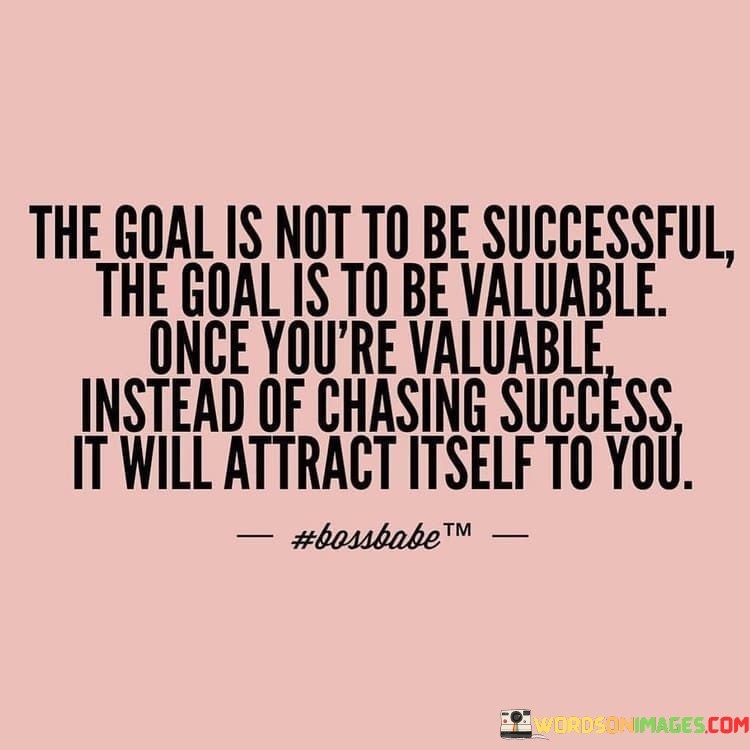 The statement suggests that the primary objective should be to cultivate value through skills, knowledge, and positive contributions. When you become valuable to others and the world around you, success becomes a natural outcome.