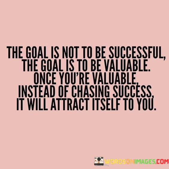 "The Goal Is Not To Be Successful, The Goal Is To Be Valuable": This part suggests that the primary objective in life should be to add value to others and the world, rather than solely pursuing personal success. It highlights the importance of contributing positively.