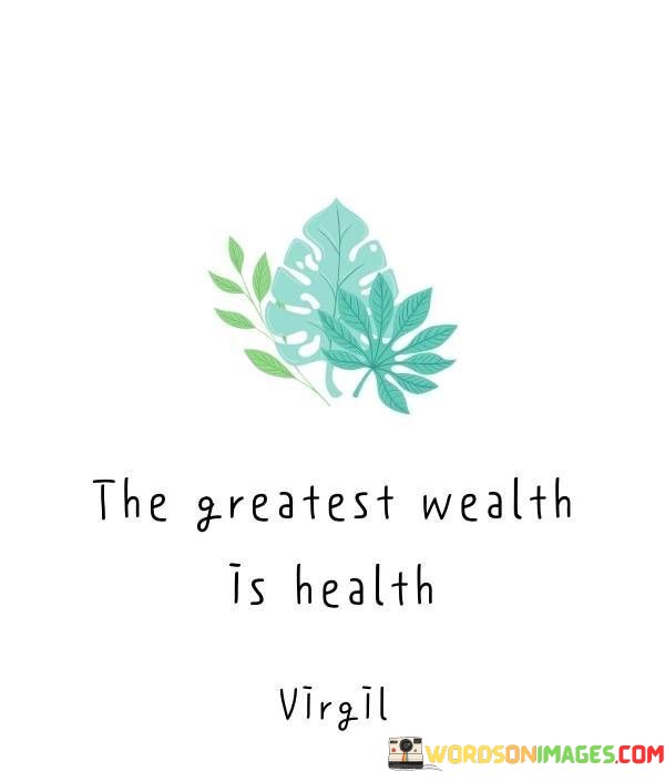 The quote champions holistic prosperity. It implies vitality as wealth. It underscores the significance of balance. By emphasizing that health encompasses both physical and mental aspects, it motivates individuals to invest in their overall well-being, recognizing that true wealth lies in achieving and maintaining a harmonious and thriving state of being.