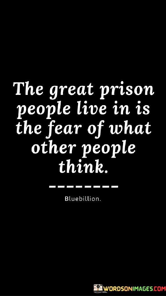 This profound quote reflects on the limiting power of the fear of judgment from others. "The great prison people live in" suggests that this fear can confine individuals mentally and emotionally.