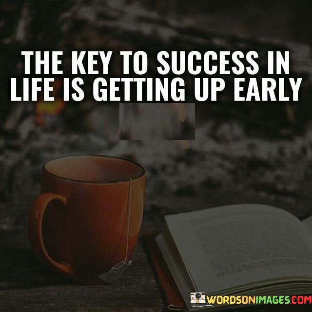 The statement "The Key to Success in Life Is Getting Up Early" suggests that starting the day early can have a positive impact on one's productivity and overall success.