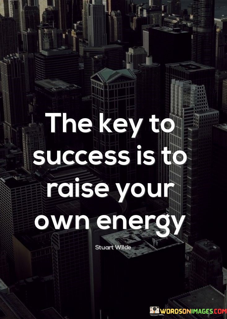 This statement underscores the importance of personal energy and mindset in achieving success. In the first part, it suggests that the key to success lies in an individual's ability to elevate their own energy levels.