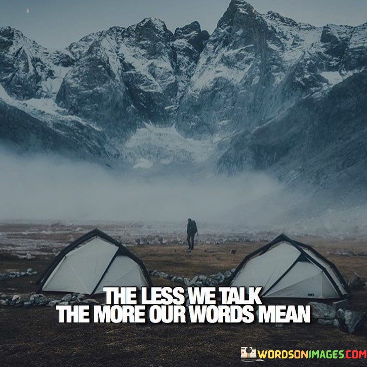 The quote champions the potency of silence. It implies that restraint enhances the impact of words. By speaking less, our utterances acquire greater significance. The quote underscores the value of thoughtful communication, suggesting that measured words carry more weight and convey deeper meaning in a world often inundated with noise.