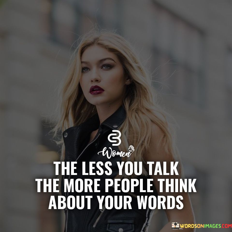 The quote "The less you talk, the more people think about your words" emphasizes the impact of thoughtful communication. It suggests that speaking less and choosing words carefully can amplify their significance. Silence can evoke curiosity and contemplation, prompting others to reflect on the limited words spoken and imbue them with deeper meaning.