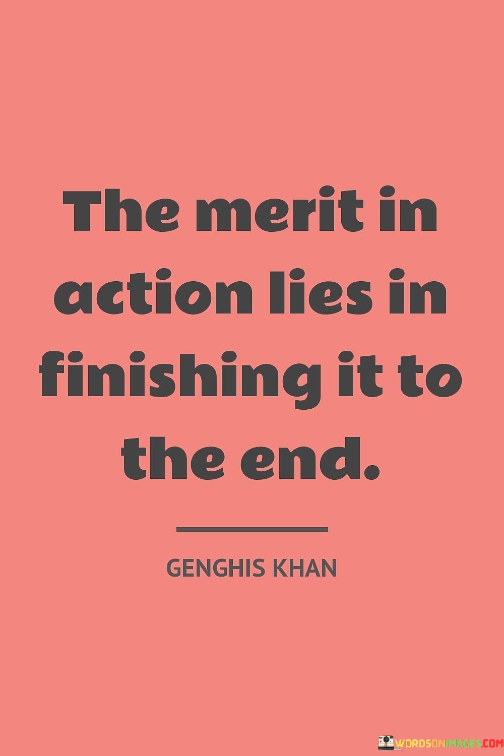 The quote embodies the essence of accomplishment. It highlights that genuine worth emerges from successful completion. It emphasizes the fulfillment of commitments as the bedrock of achievement, reminding individuals that enduring commitment leads to meaningful outcomes, portraying the journey to the end as the hallmark of true merit in action.