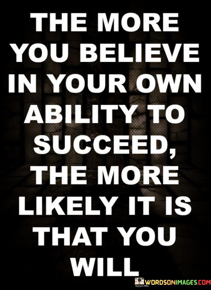 Ultimately, the quote underscores the notion that self-belief is a driving force behind success. By instilling faith in your own abilities, you empower yourself to overcome obstacles and work towards your aspirations with determination and confidence.