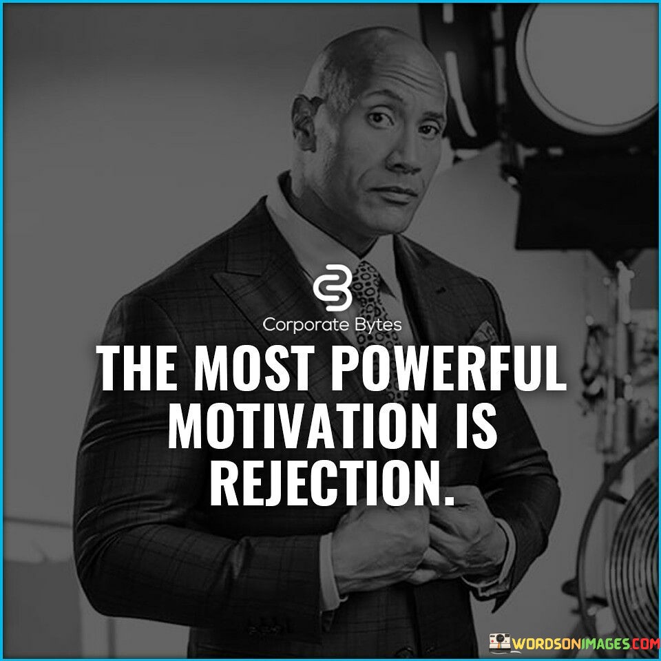 This quote suggests that rejection can be a potent source of motivation. When faced with rejection, individuals may experience a strong desire to prove themselves, to succeed, and to overcome obstacles. The emotional impact of rejection can fuel determination and drive, propelling individuals to work harder and achieve their goals.