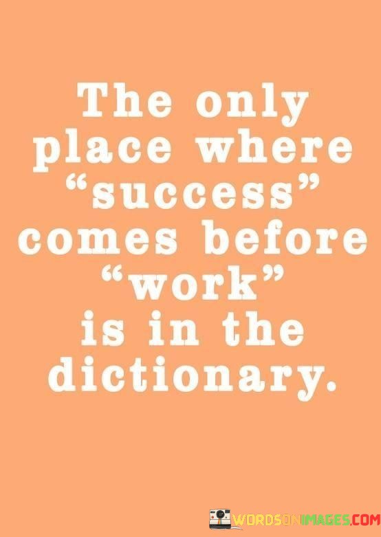 The phrase "The Only Place Where Success Comes Before Work" encapsulates the idea that genuine success is not achieved without effort and dedication. This quote underscores the fundamental truth that hard work is a prerequisite for achieving meaningful accomplishments.