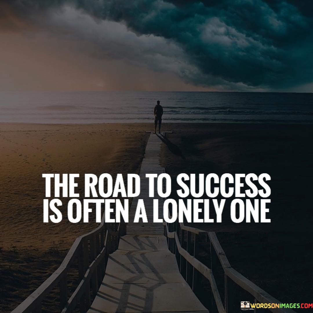 "The road of success is often a lonely one" suggests that the journey towards achieving significant goals can be isolating. This phrase indicates that the path to success might involve sacrifices, solitude, and a lack of immediate companionship.