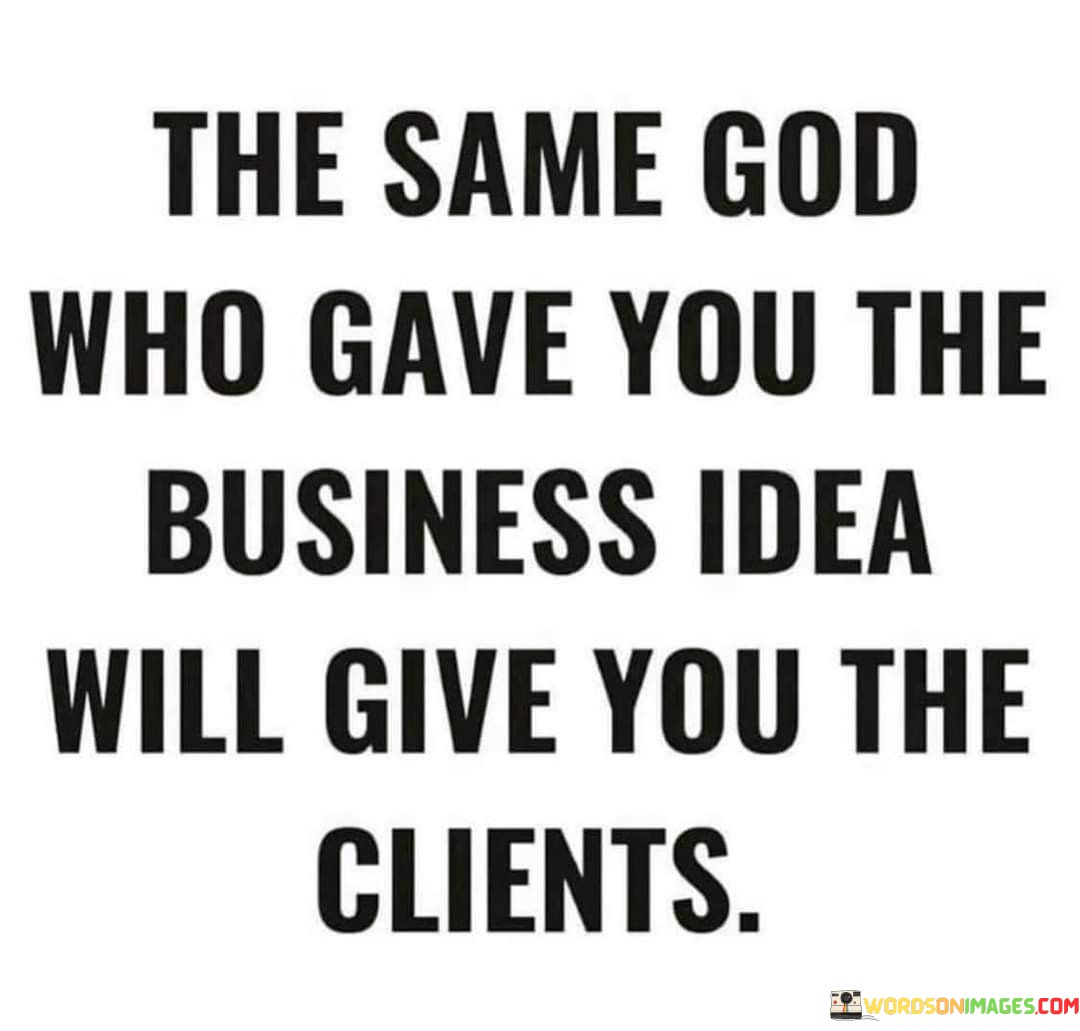 This quote conveys the idea that the same divine inspiration that led to a business idea will also provide the necessary clients or customers. In a single sentence, it suggests that the God who inspired the concept will also bring the clientele.